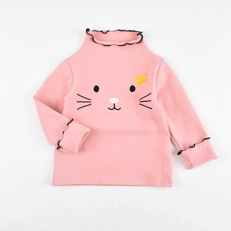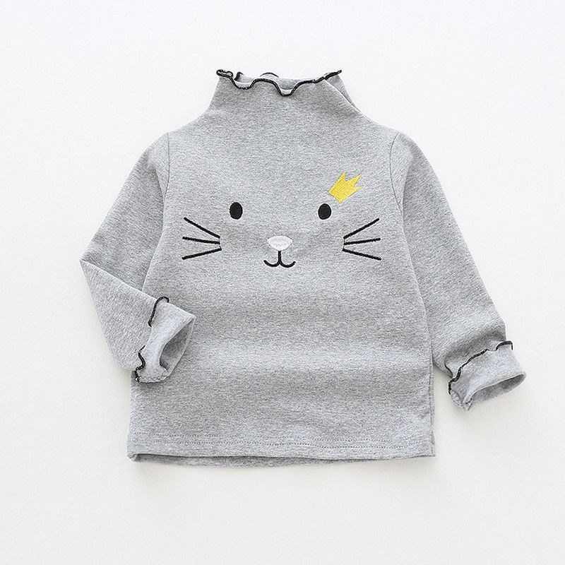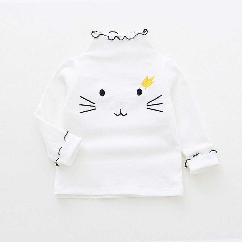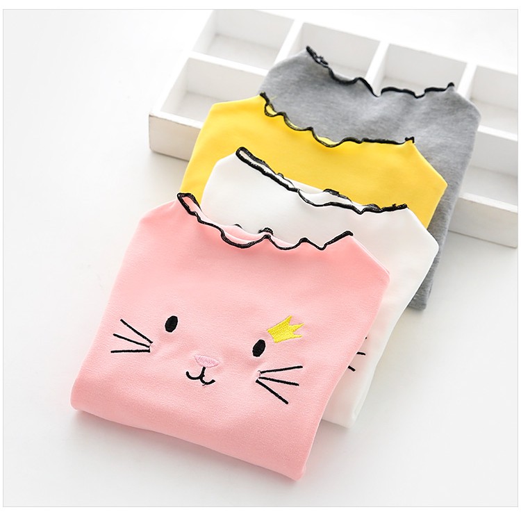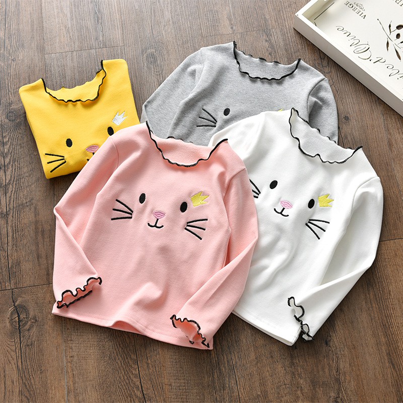 Baby童衣 女童長袖T恤 中小女童內搭上衣 韓版貓咪刺繡花邊領長袖上衣 88615