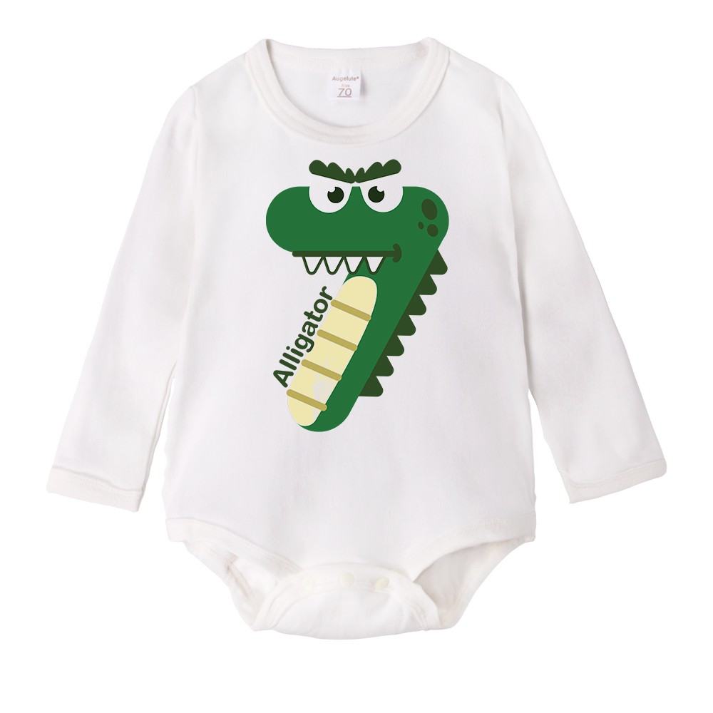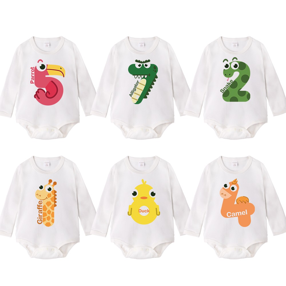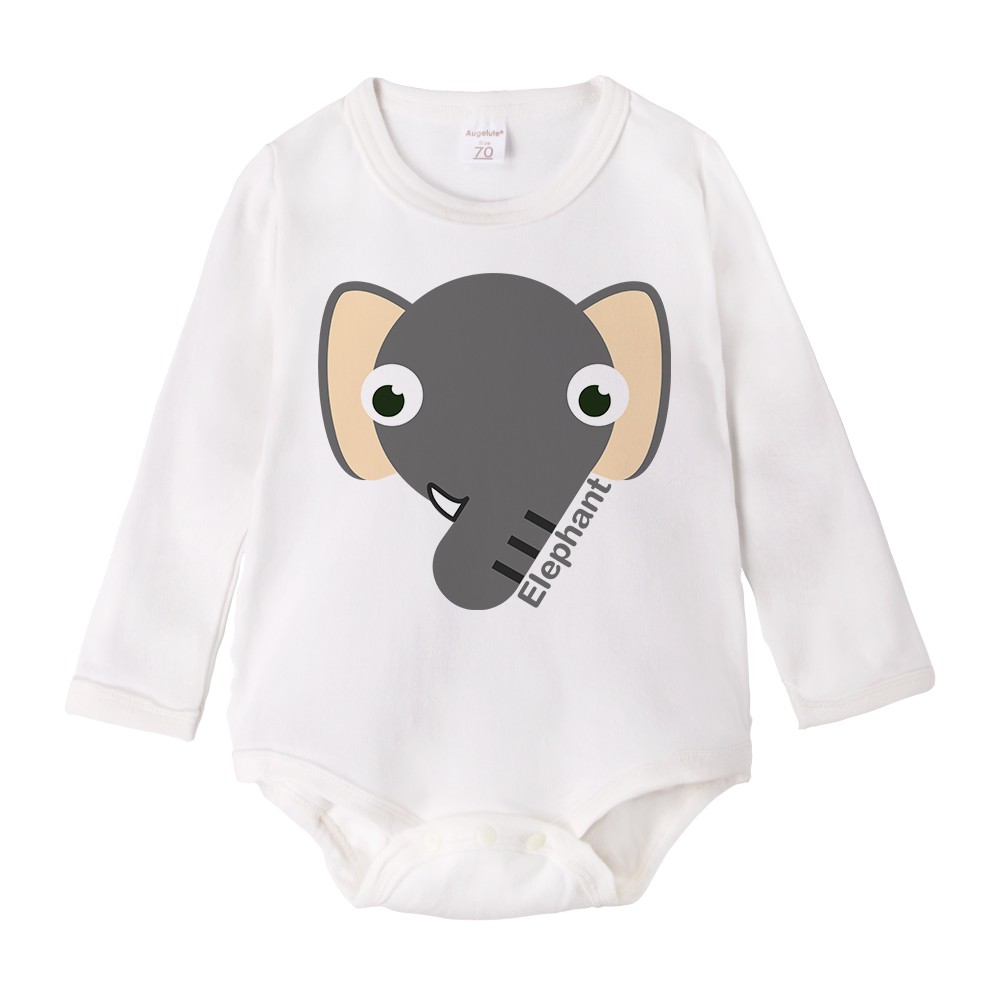Augelute 白色長袖包屁衣 獨家自印 動物數字包屁衣 純棉 圓領 男寶寶 女寶寶 爬服 66348