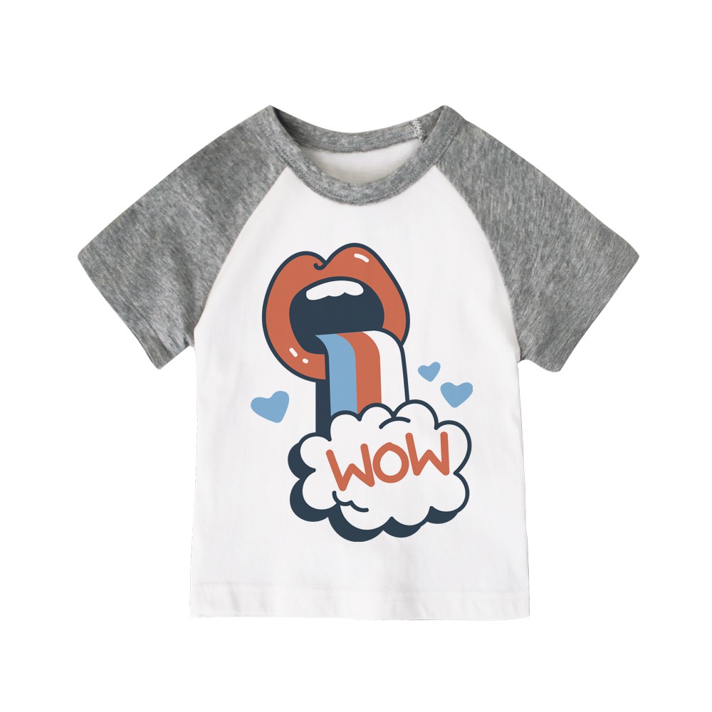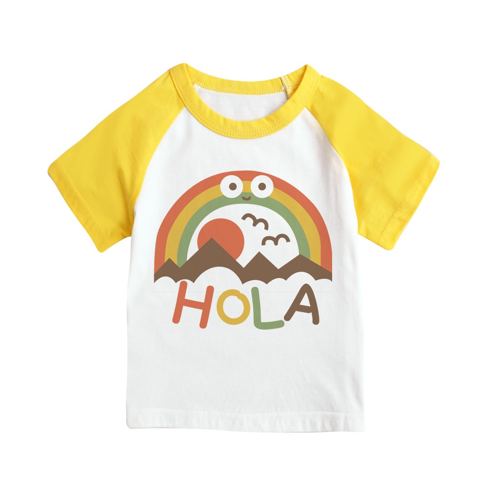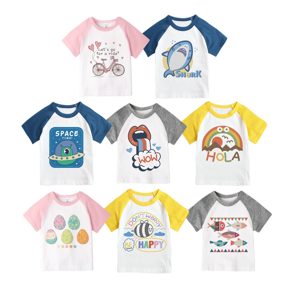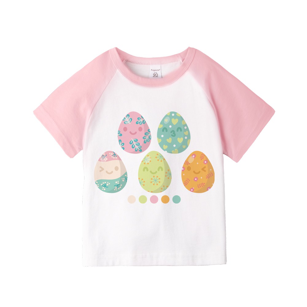 Augelute 兒童 男童 女童 上衣 圓領 純棉 撞色 插肩 短袖 自印款 66251