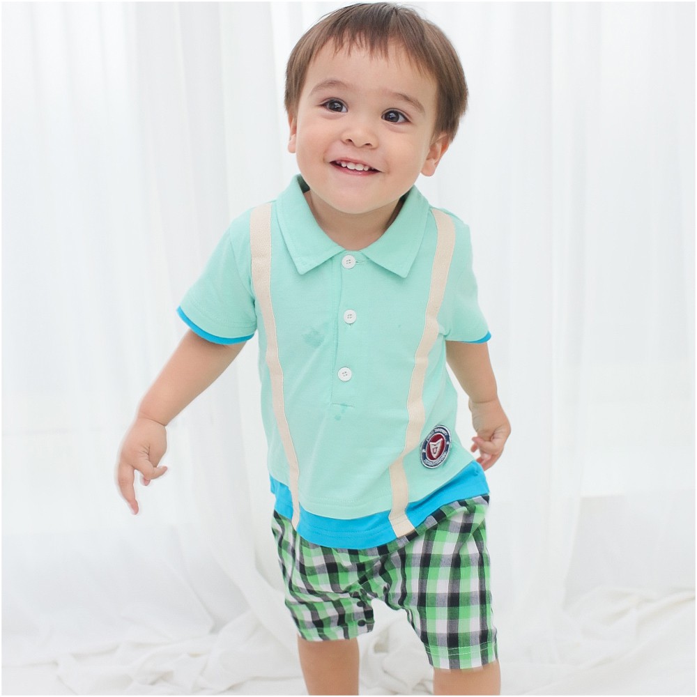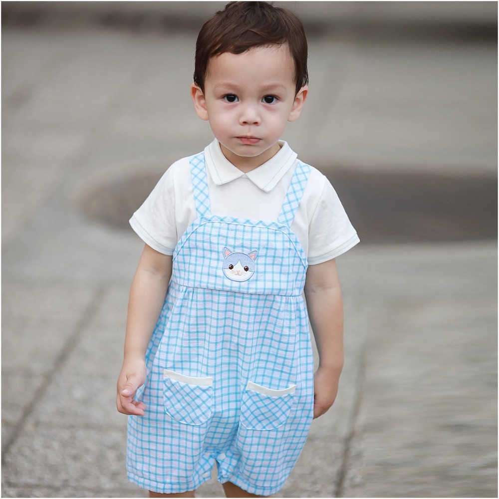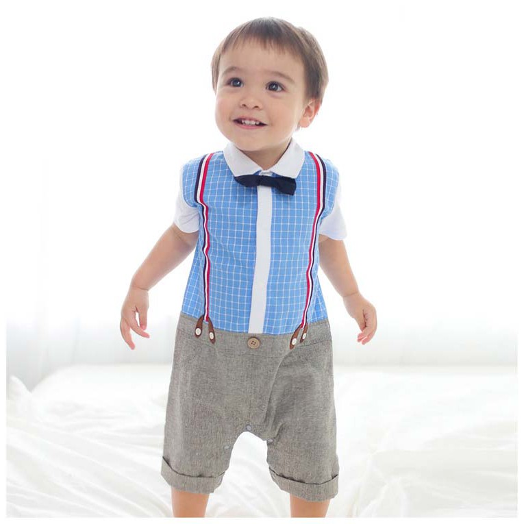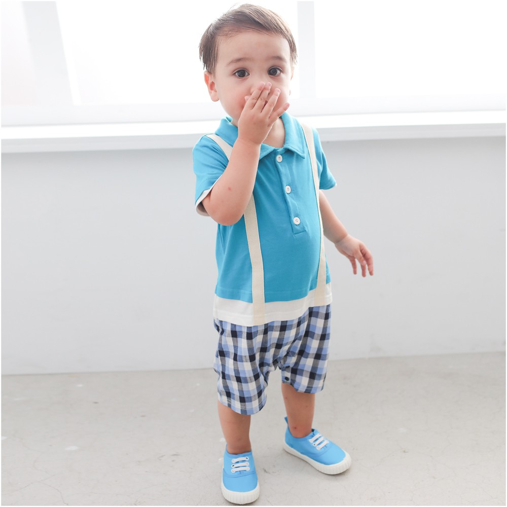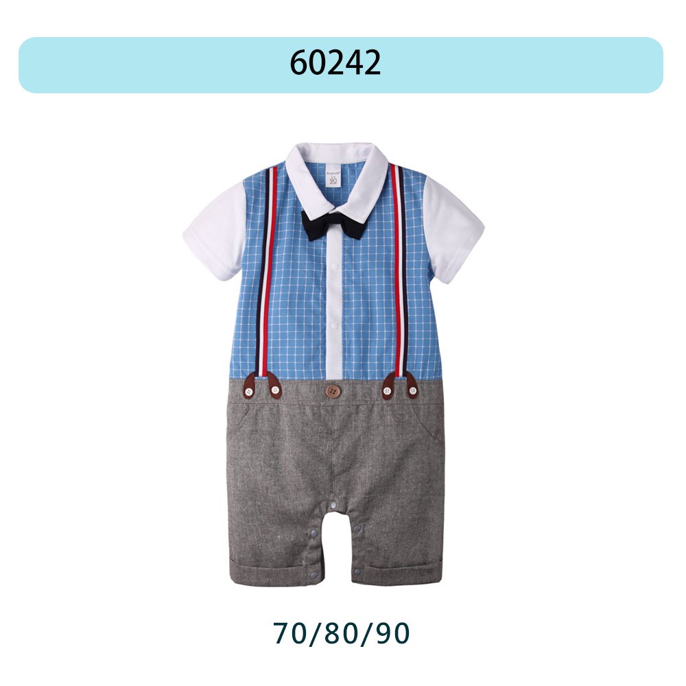 augelute 短袖連身衣 假吊帶 男寶寶 假兩件 小紳士 爬服 哈衣 60142