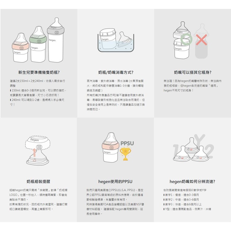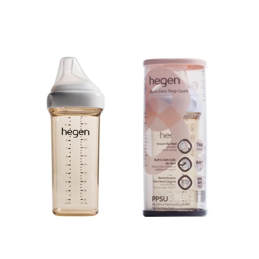 新加坡品牌hegen 金色奇蹟PPSU多功能方圓型寬口奶瓶 150ml/240ml/330ml 88739