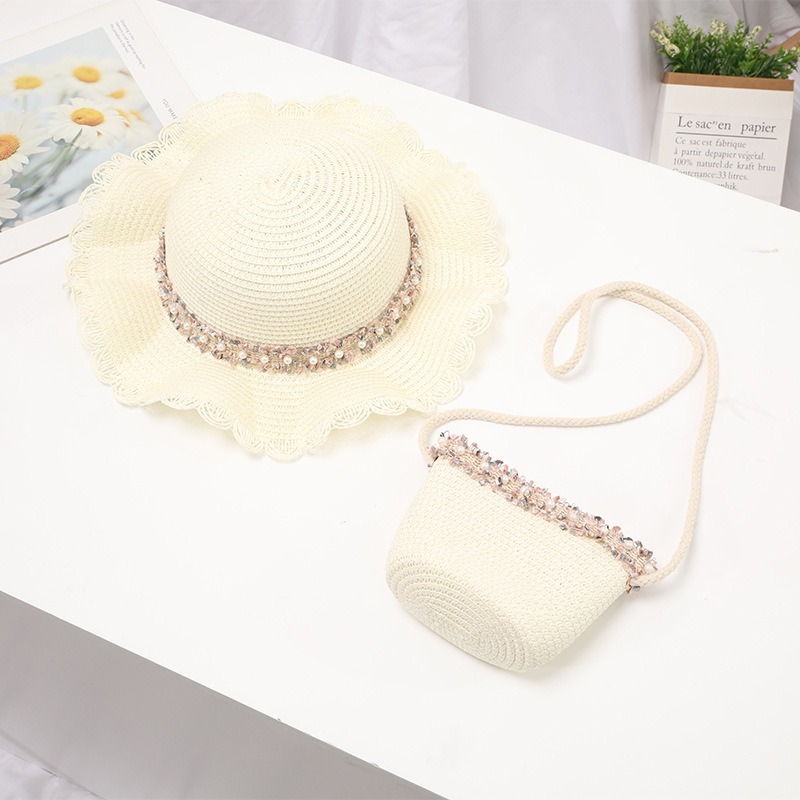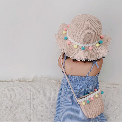 Baby童衣 女童渡假風防曬草帽 編織小錢包 親子草帽 造型空頂帽 防曬袖套 小熊空頂編織帽 88281