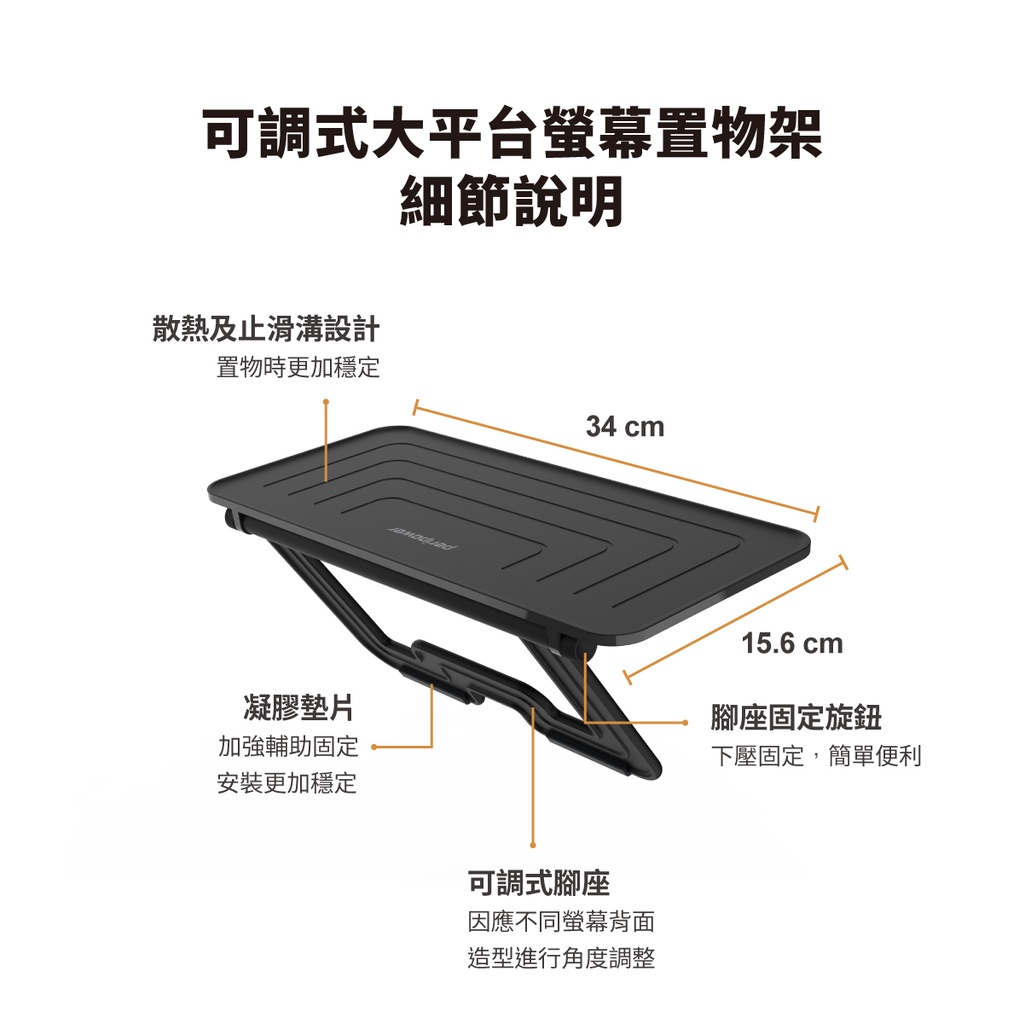 【peripower】MO-26 可調式大平台螢幕置物架/可放電視盒/機上盒
