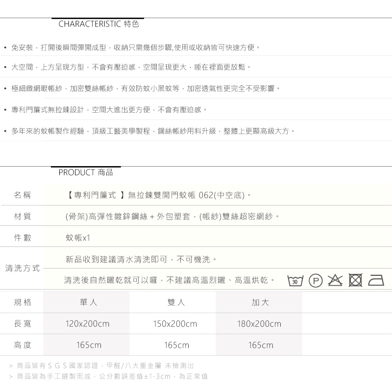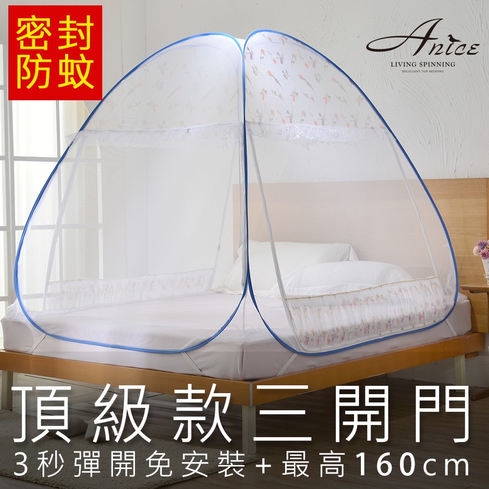 雅妮詩 專利雙開門蚊帳 門簾蚊帳 三開門拉鍊蚊帳【單 雙 加】3秒彈開免安裝 蒙古包/方型 蚊帳 099