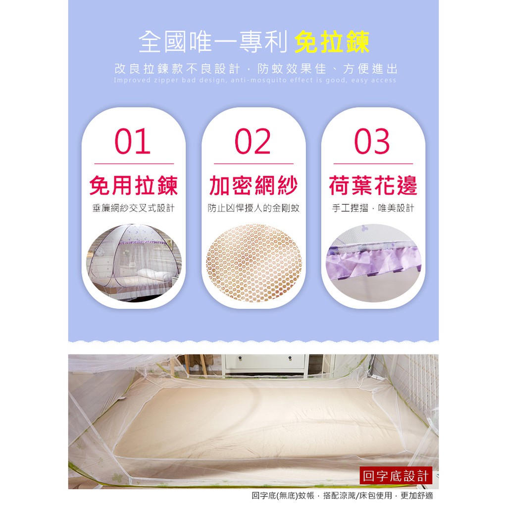 雅妮詩 060雙開門彈開式防蚊帳 雙人 幸運草荷葉邊設計 防蚊 防小黑蚊 防登革熱 門簾式蚊帳 免拉鍊專利