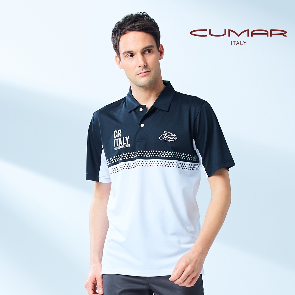 【CUMAR】男裝短袖襯衫領吸濕排汗POLO衫 178220-92黑白