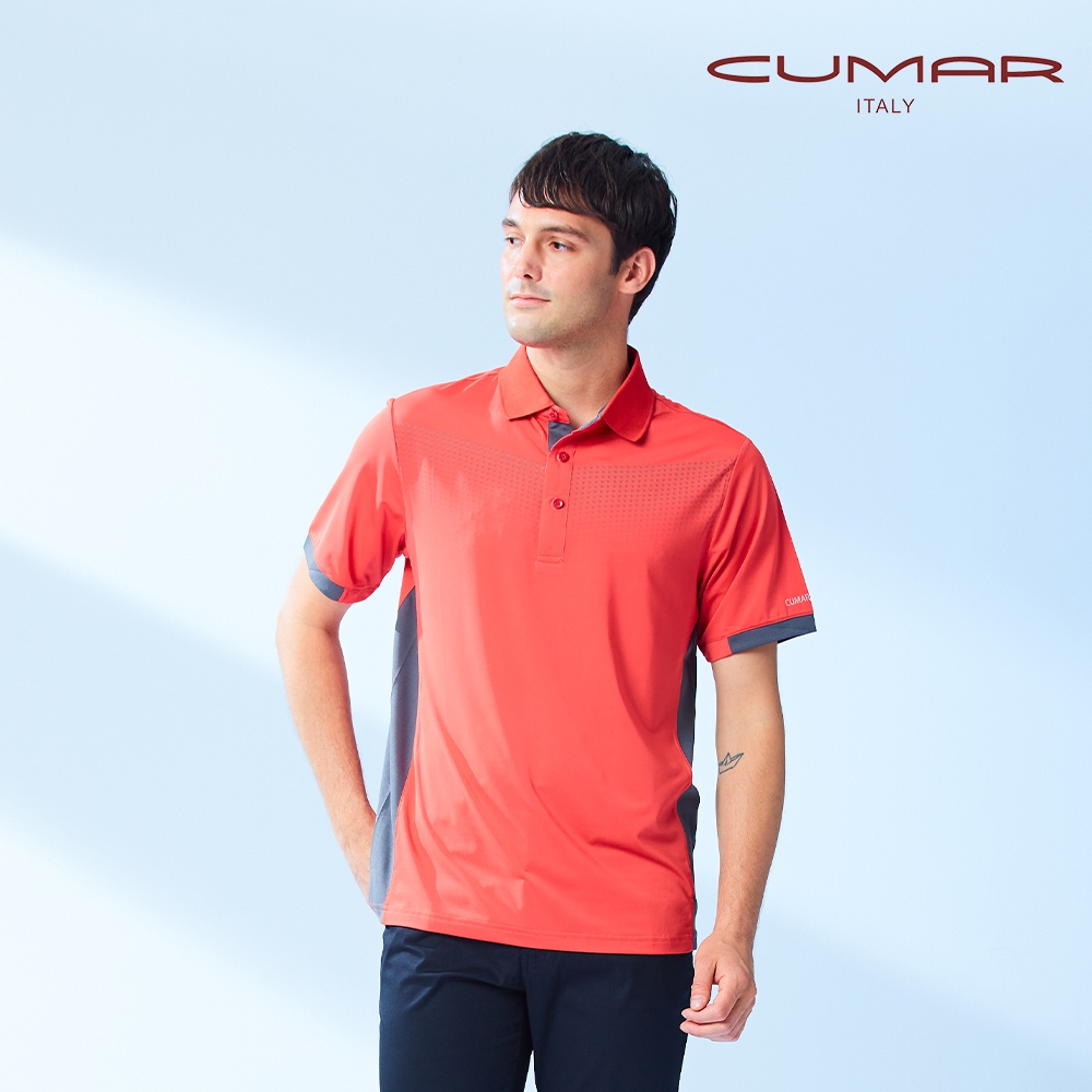 【CUMAR】男裝短袖吸濕排汗POLO衫 188222-64紅灰