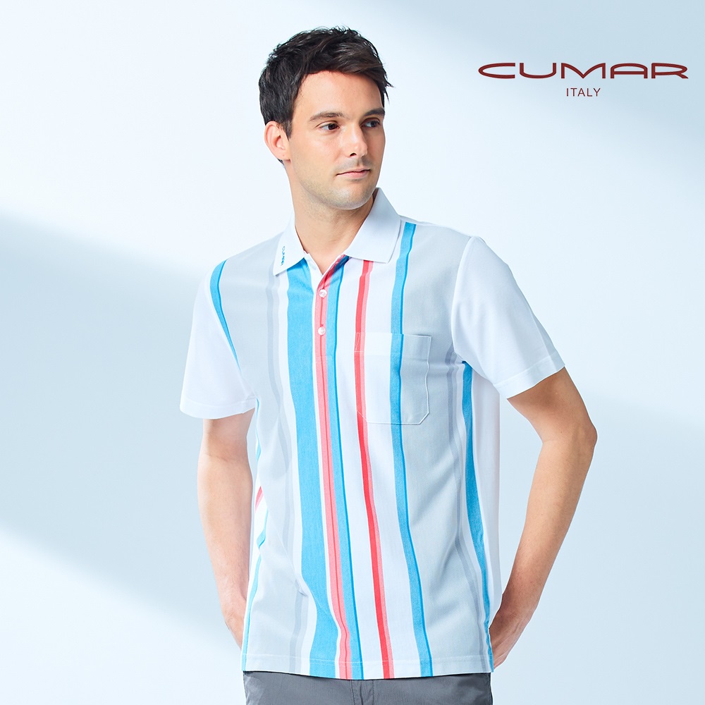 【CUMAR】男裝短袖吸濕排汗POLO衫 188263-14白藍