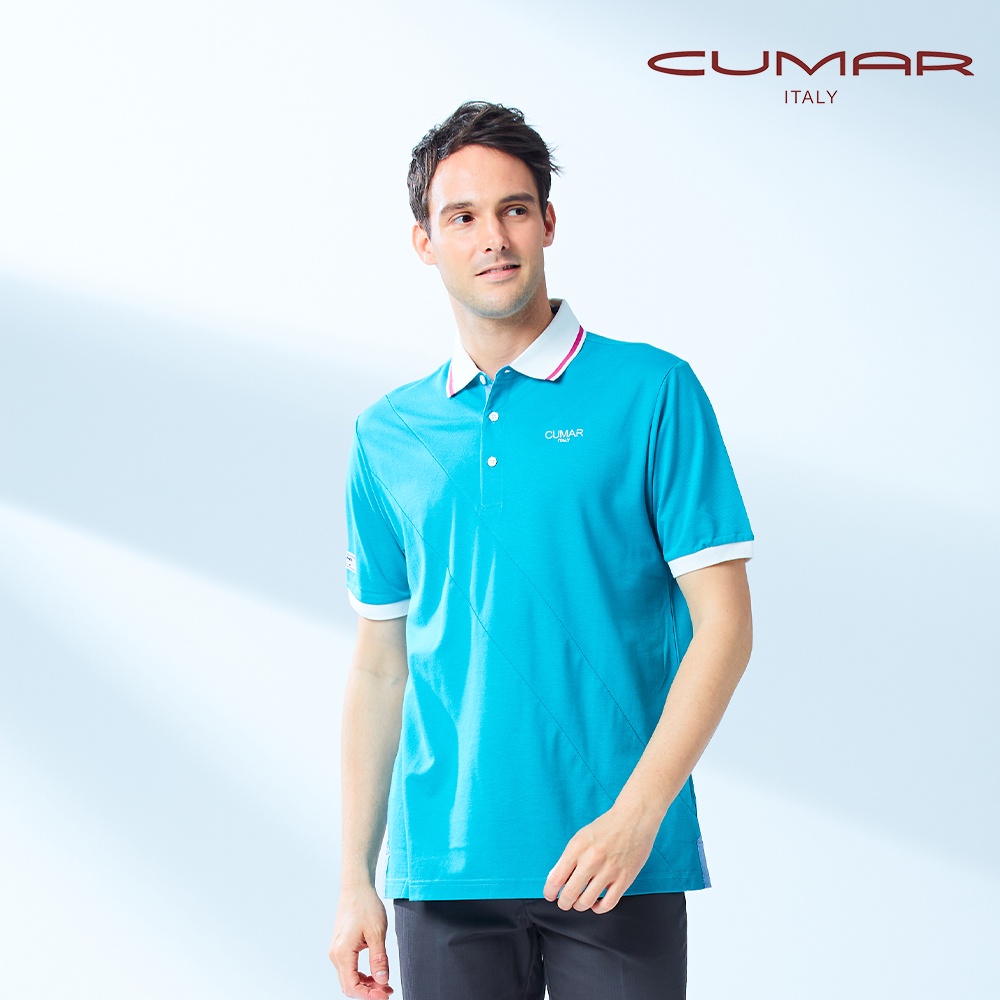 【CUMAR】男裝短袖吸濕排汗POLO衫 168232-45藍綠
