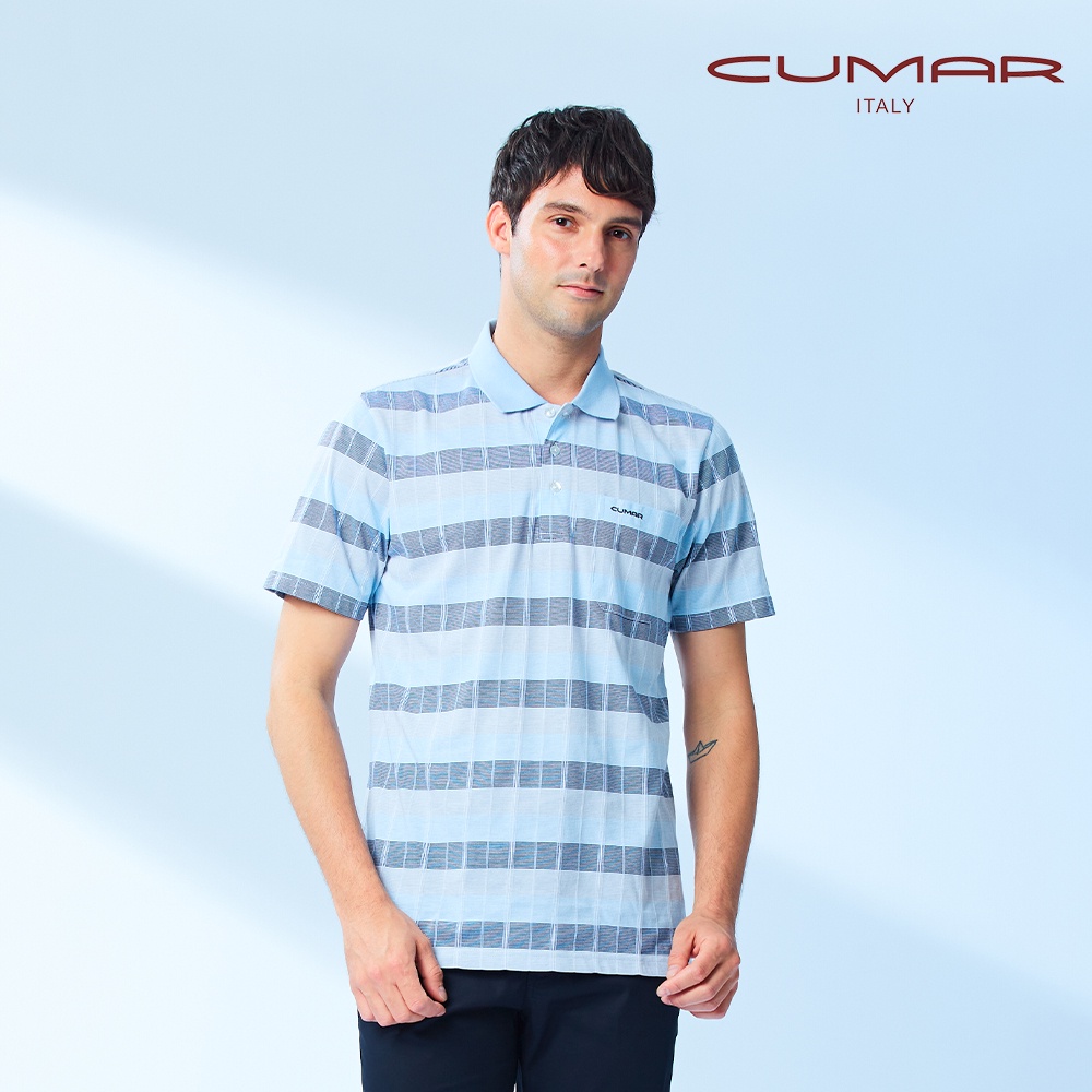 【CUMAR】男裝短袖棉質POLO衫 208251-42水藍
