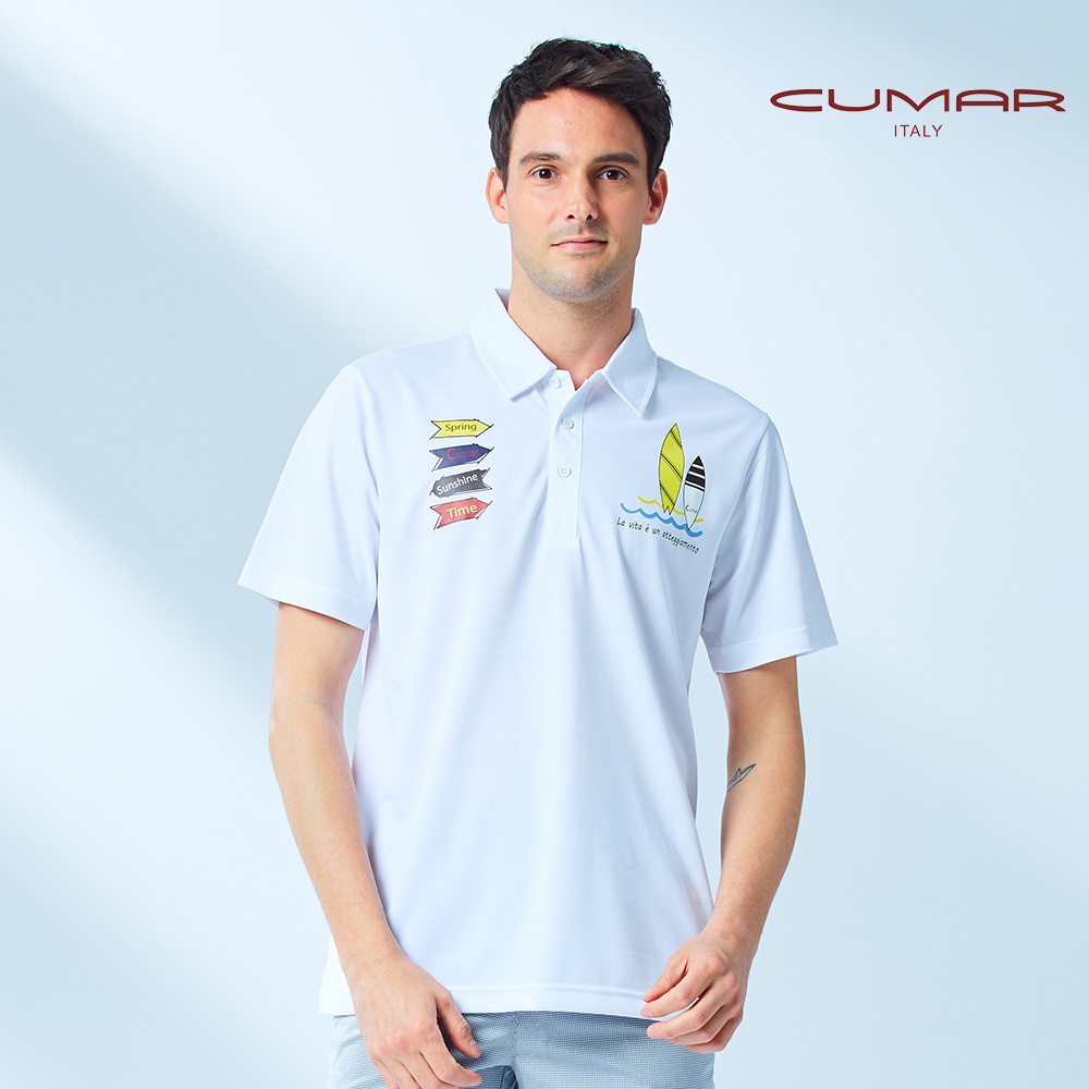 【CUMAR】男裝短袖棉質條紋POLO 198244-01白