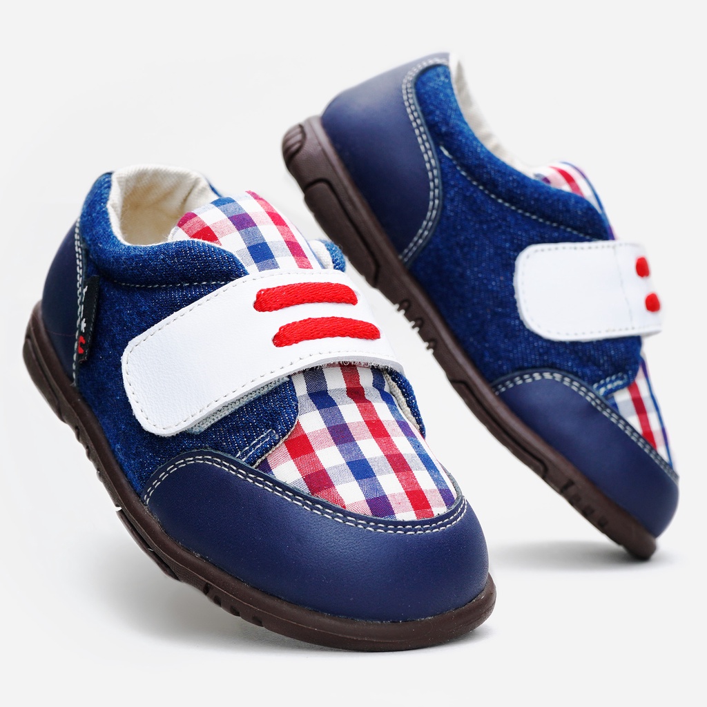 【be*U 手工鞋】經典紅藍白格 真皮數位童鞋(13.5~19.3公分) | MIT 手工鞋 皮鞋 訂做鞋