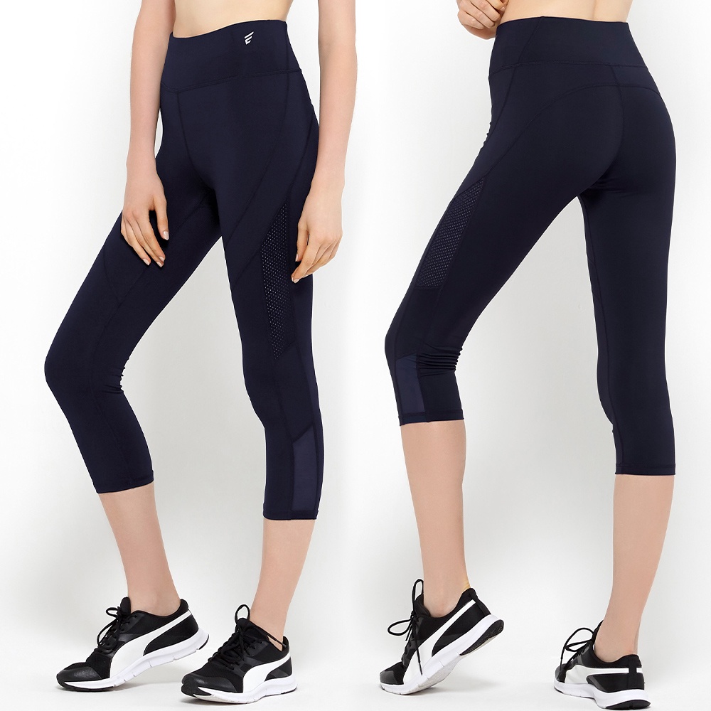 【pierre cardin 女性內衣】高腰曲線拼接瑜珈七分褲
