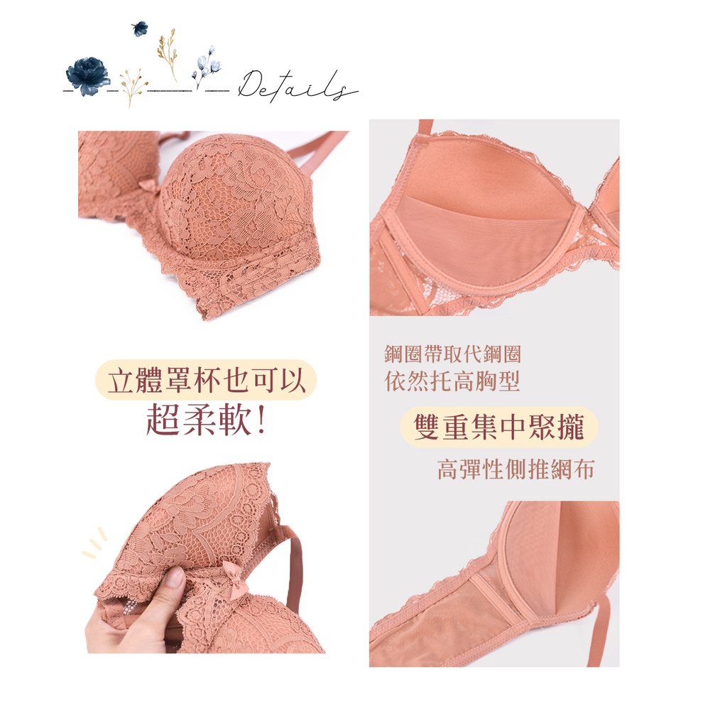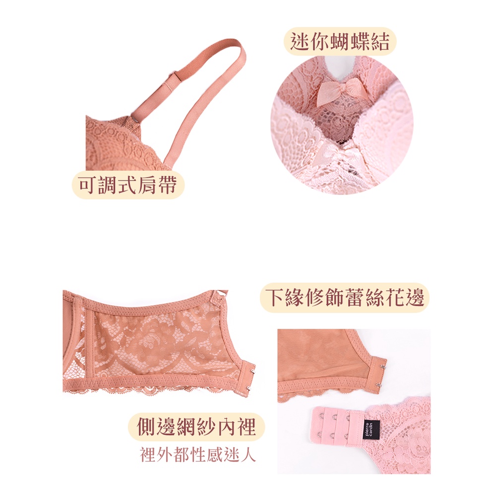 【pierre cardin 皮爾卡登女性內衣】花卉蕾絲無鋼圈集中內衣-C罩杯