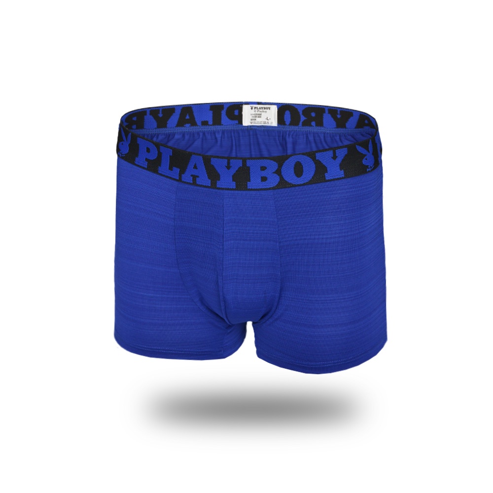 【PLAYBOY】藍色織帶涼感透氣緞彩彈性平口褲-SP34222