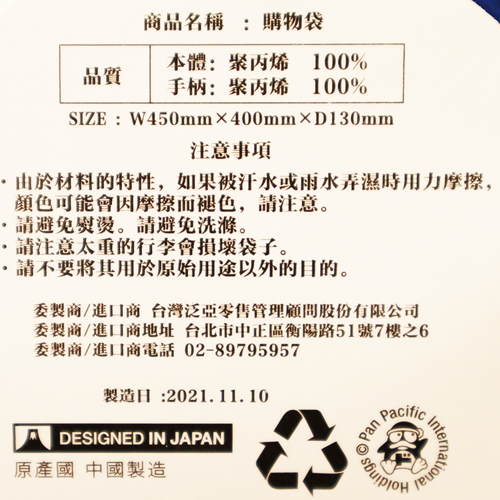 DONKI 購物袋(多款隨機出貨) 45x40x13cm【Donki日本唐吉訶德】環保袋