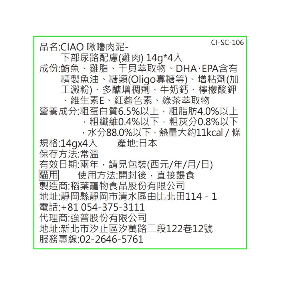 CIAO 啾嚕肉泥-下部尿路配慮(雞肉) 14g x4入【Donki日本唐吉訶德】