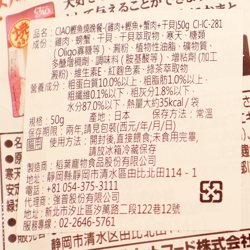 CIAO 燒晚餐包(雞肉+鰹魚+蟹肉+干貝) 50g【Donki日本唐吉訶德】
