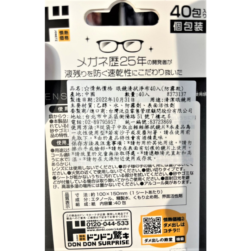情熱價格 眼鏡拭淨布(防霧款) 40入【Donki日本唐吉訶德】