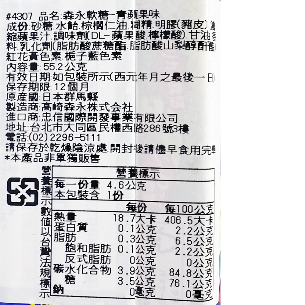 森永 軟糖-青蘋果味 55.2g【Donki日本唐吉訶德】