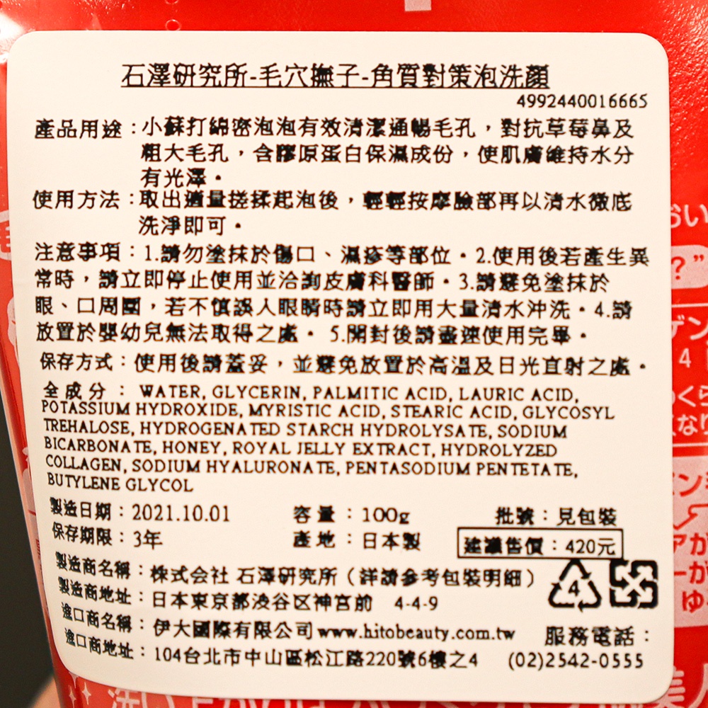 石澤研究所 毛穴撫子 角質對策泡洗顏 100g【Donki日本唐吉訶德】洗面乳