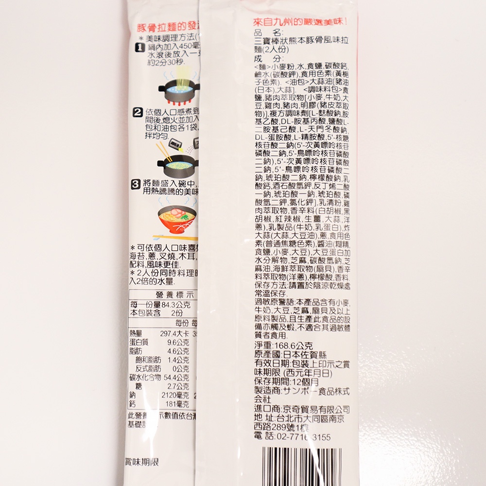 三寶 棒狀熊本豚骨風味拉麵 168g【Donki日本唐吉訶德】
