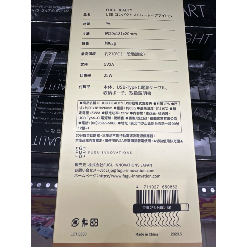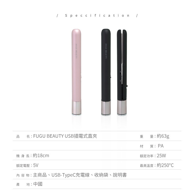 FUGU BEAUTY USB插電式直髮夾 黑色(原售價690)【Donki日本唐吉訶德】