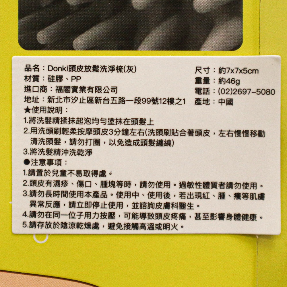 DONKI 頭皮放鬆洗淨梳(灰) 1個【Donki日本唐吉訶德】洗頭按摩梳 梳子