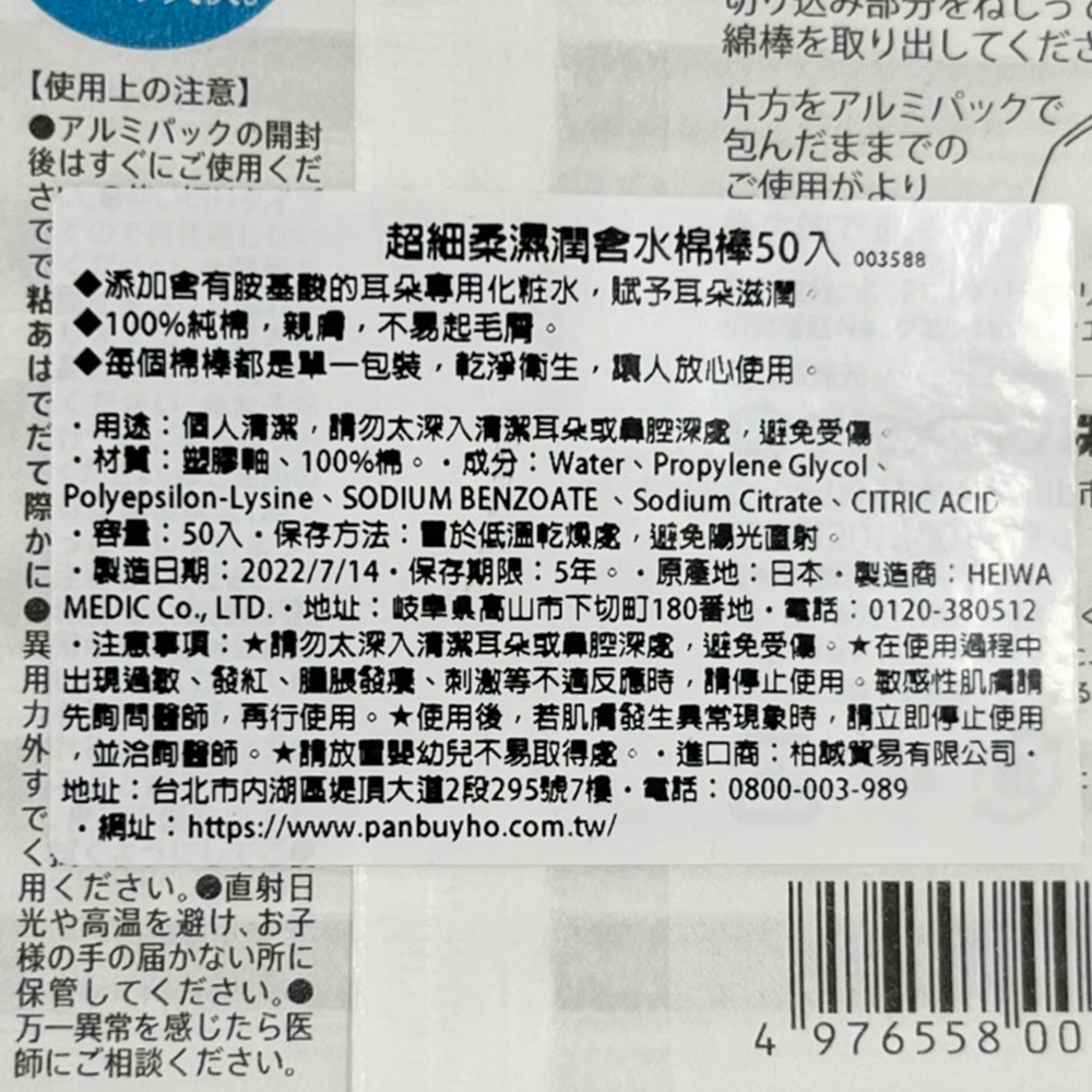 平和棉棒 超細柔濕潤含水棉棒 50入【Donki日本唐吉訶德】
