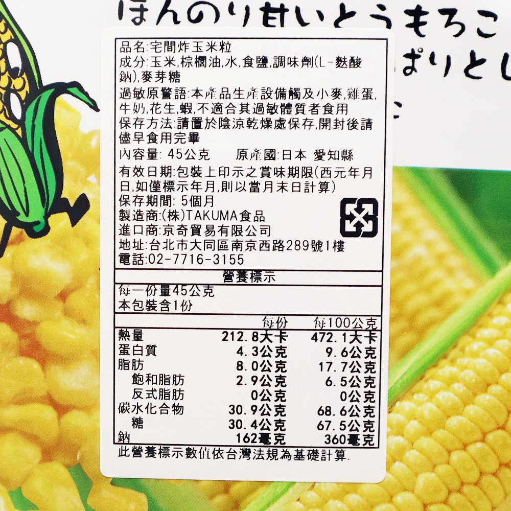 TAKUMA 雪鹽玉米粒 45g【Donki日本唐吉訶德】宅間炸玉米粒