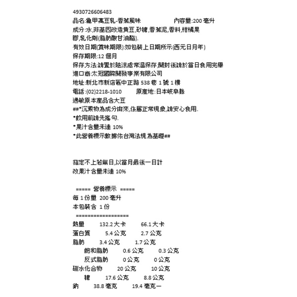 龜甲萬 豆乳 香蕉風味 200ml【Donki日本唐吉訶德】