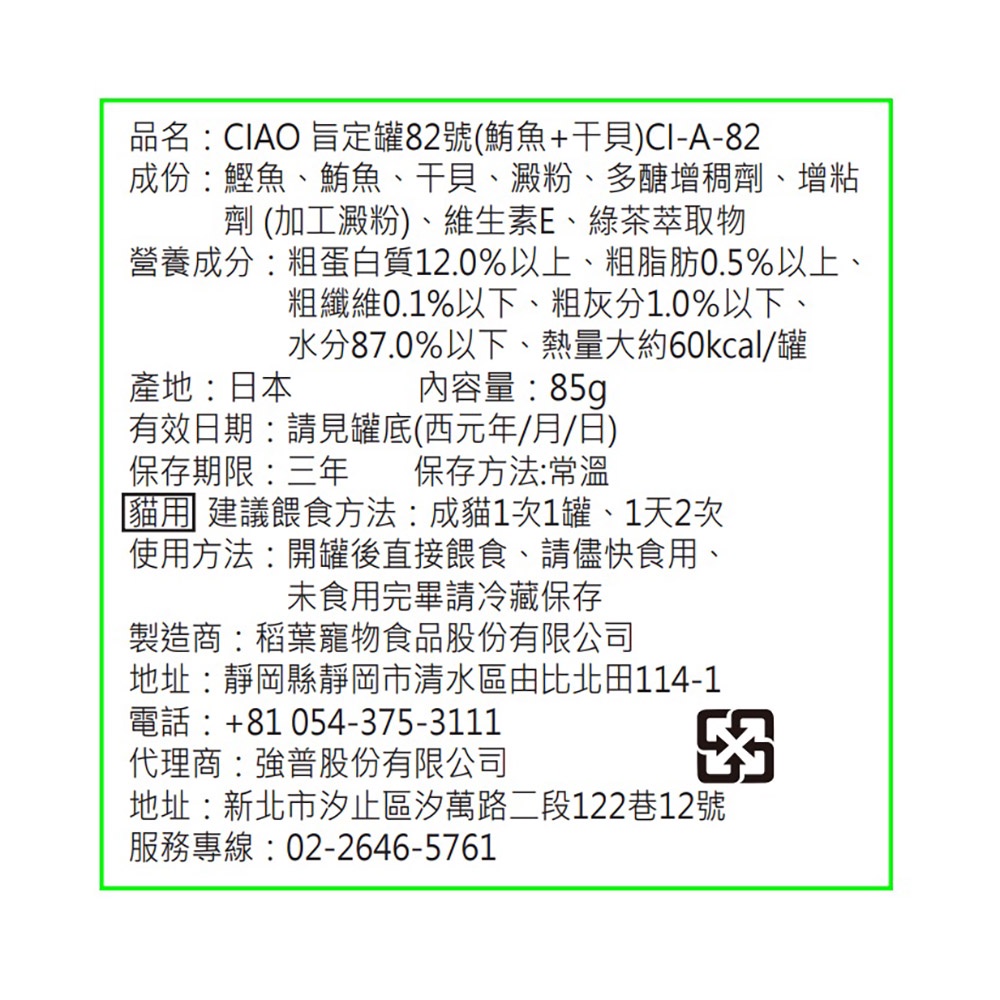INABA CIAO 旨定罐82號(鮪魚+干貝) 85g/罐【Donki日本唐吉訶德】