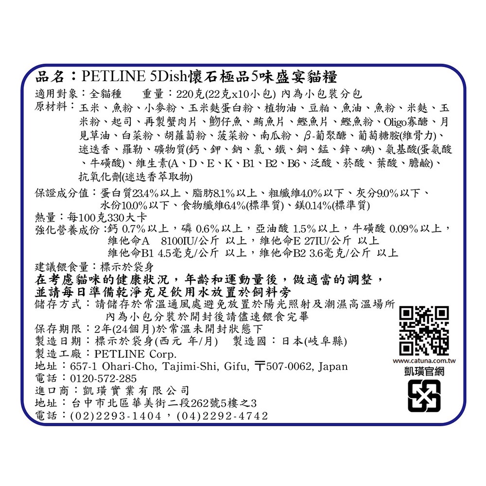 日清 5DISH懷石極品-5味盛宴猫料(藍) 22g x10小包【Donki日本唐吉訶德】