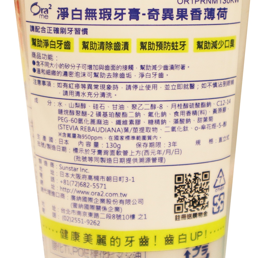 SUNSTAR Ora2 me 淨白無瑕牙膏-奇異果薄荷 130g【Donki日本唐吉訶德】