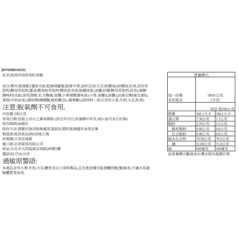 尾西 沖泡即食松茸飯 100g【Donki日本唐吉訶德】