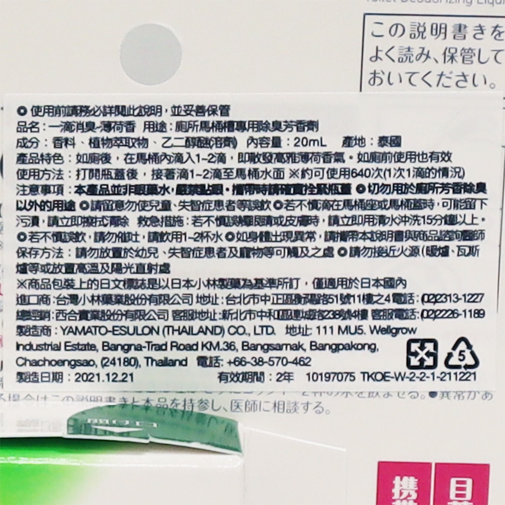 小林製藥 香花蕾 1滴消臭 薄荷香 20ml【Donki日本唐吉訶德】