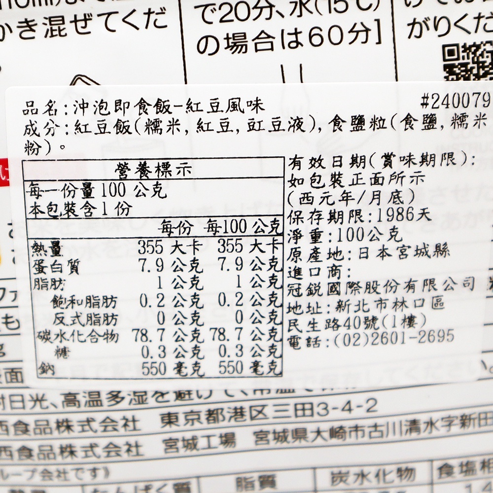 尾西 沖泡即食飯-紅豆風味 100g【Donki日本唐吉訶德】