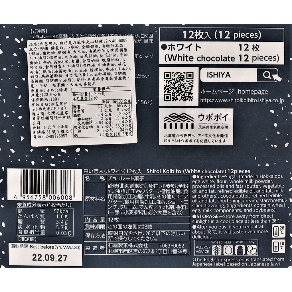 北海道白色戀人 白巧克力風味夾心餅乾 12枚入【Donki日本唐吉訶德】白巧克力風味