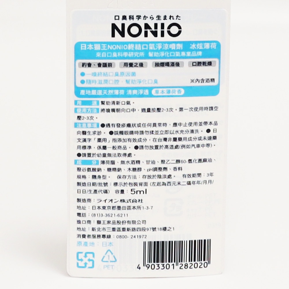 LION獅王 NONIO終結口氣淨涼噴劑冰炫薄荷 5ml【Donki日本唐吉訶德】