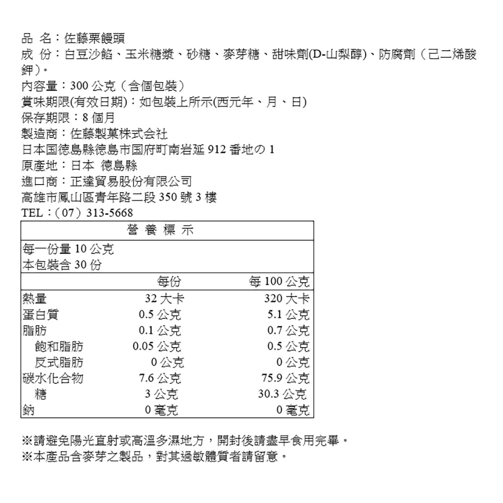 佐藤 栗饅頭 300g【Donki日本唐吉訶德】