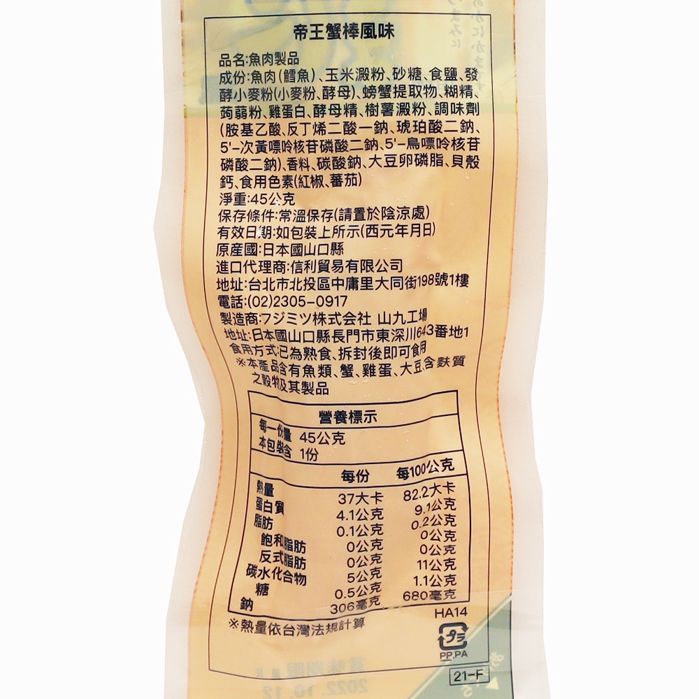 山九 即食帝王蟹味棒 45g【Donki日本唐吉訶德】蟹肉棒風味 蟹味棒
