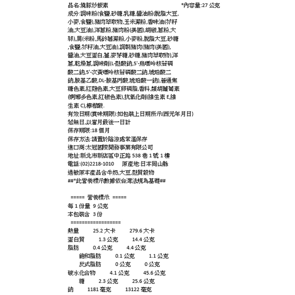 永谷園 燒豚炒飯素 9g x3【Donki日本唐吉訶德】