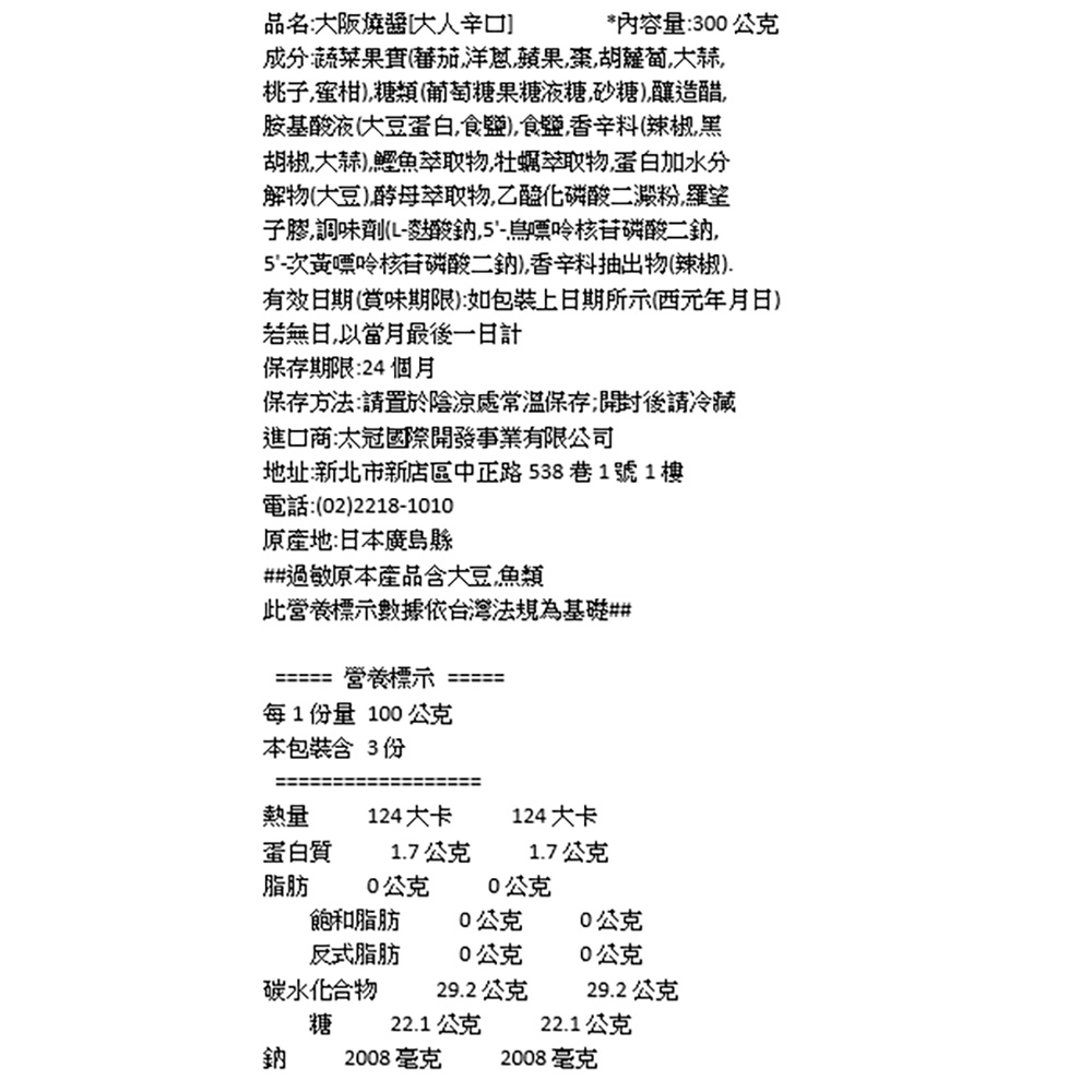 多福 大阪燒醬 大人辛口 300g【Donki日本唐吉訶德】