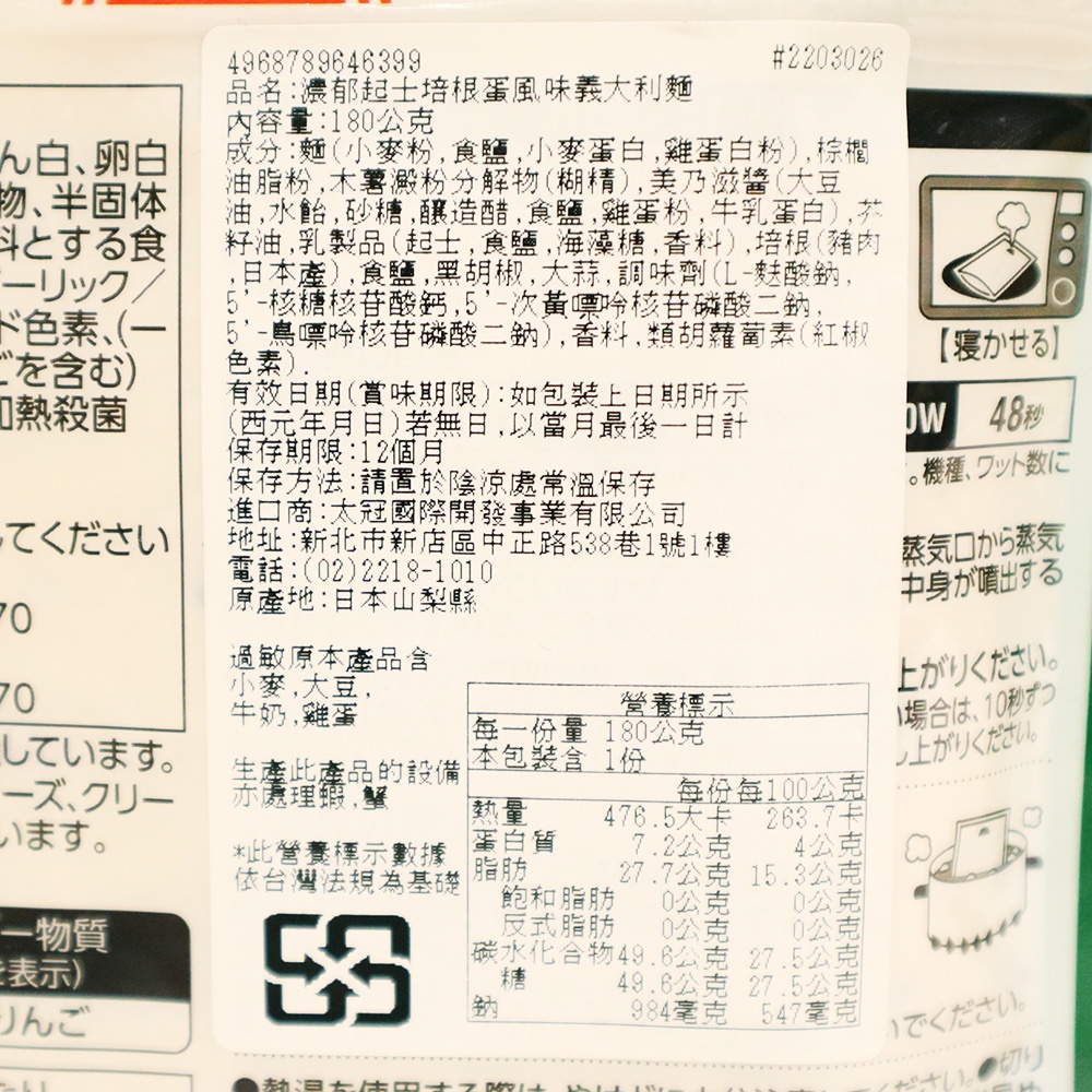 信玄食品 濃郁起士培根蛋風味義大利麵 180g【Donki日本唐吉訶德】