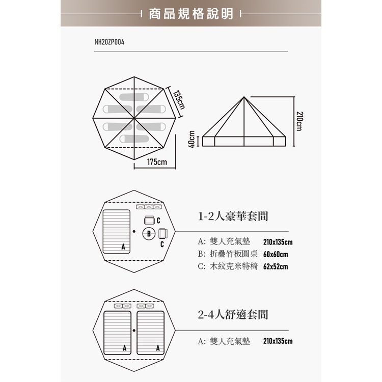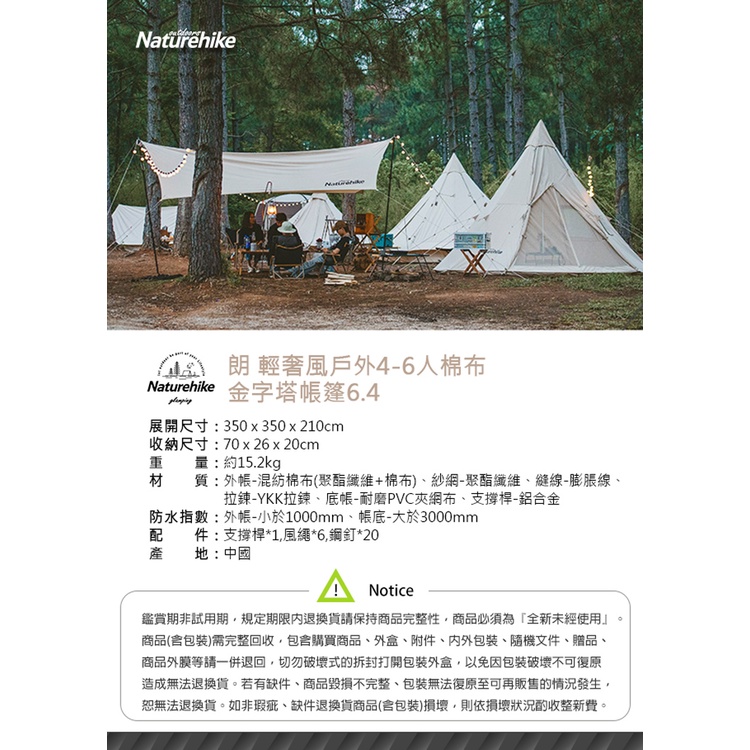 【Naturehike】朗 輕奢風戶外4-6人棉布金字塔帳篷6.4 Glamping系列 原廠公司貨一年保固