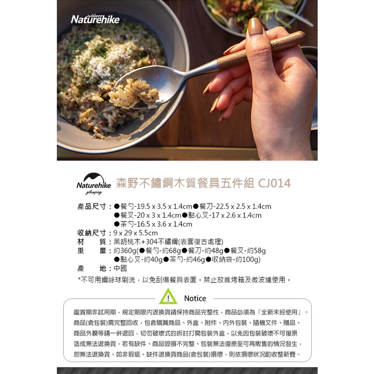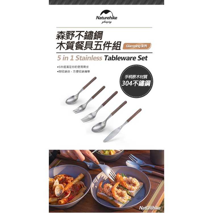 【Naturehike】森野不鏽鋼木質餐具五件組 CJ014 原廠公司貨一年保固