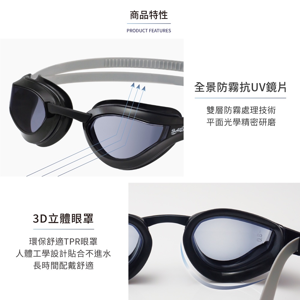 【SAEKO】度數款 近視三鐵運動款成人泳鏡 廣角抗UV防霧 大鏡框 S68AOP