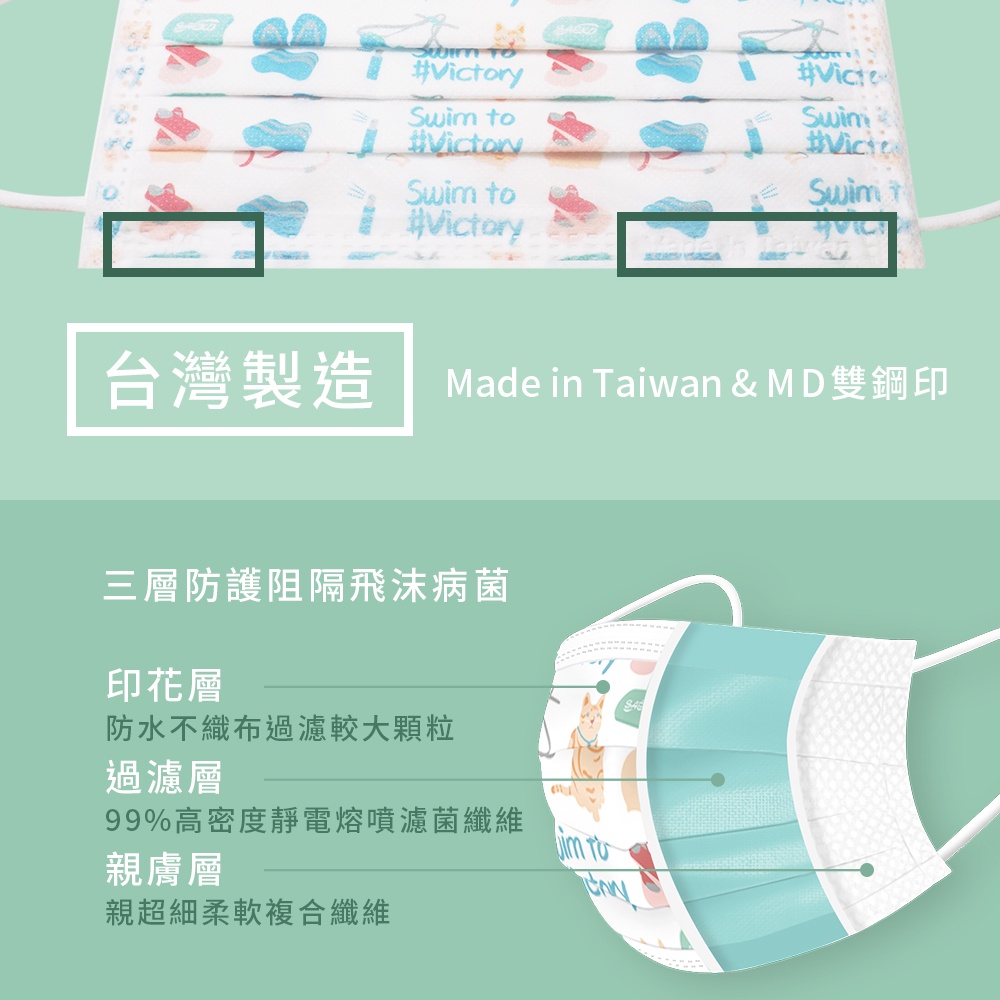 【SAEKO】成人用醫療口罩 愛游泳的貓 台灣製 雙鋼印 日安美 一袋5入
