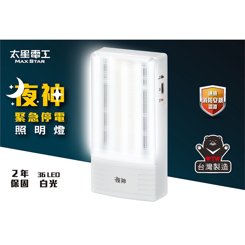 【太星電工】夜神LED緊急停電照明燈 36LED 白光 /EM-130-36個檢 IGA9002