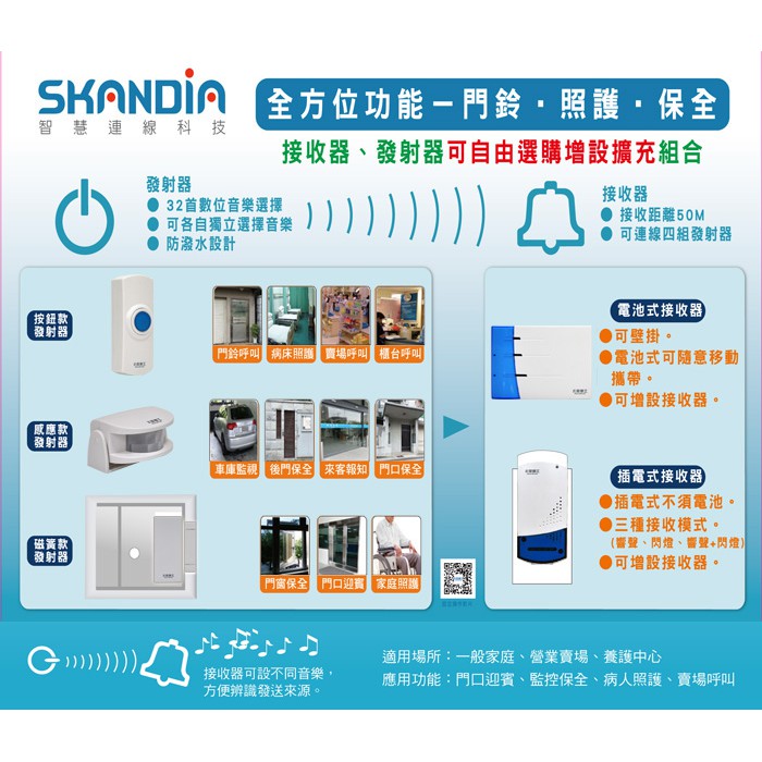 【太星電工】SKANDIA組合式門鈴/電池式接收器